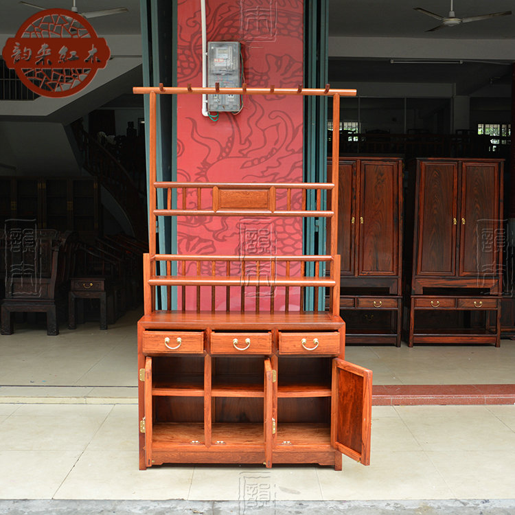 Myanmar flower pear wood cloak hat rack with containing cabinet Chinese imitation antique red wood solid wood floor hanger bedroom furniture