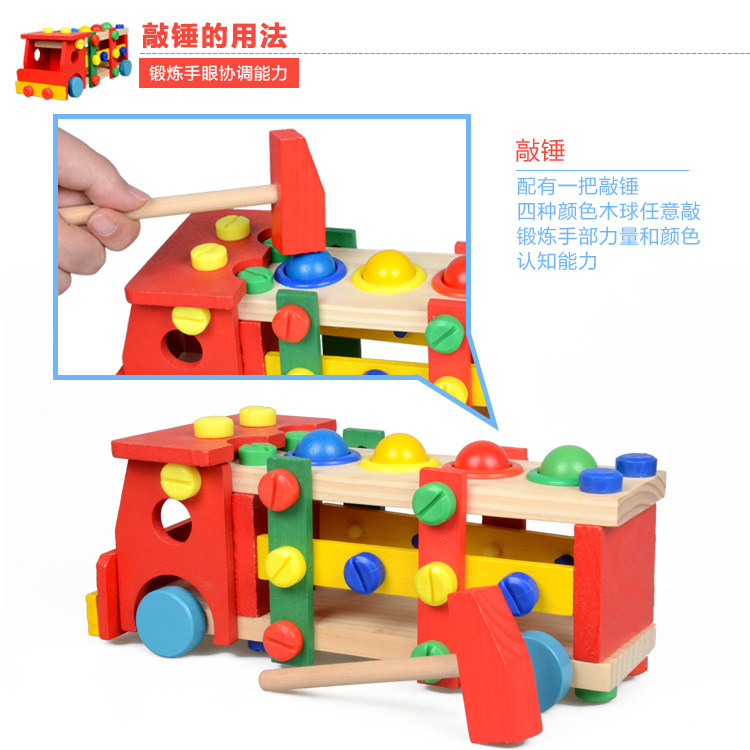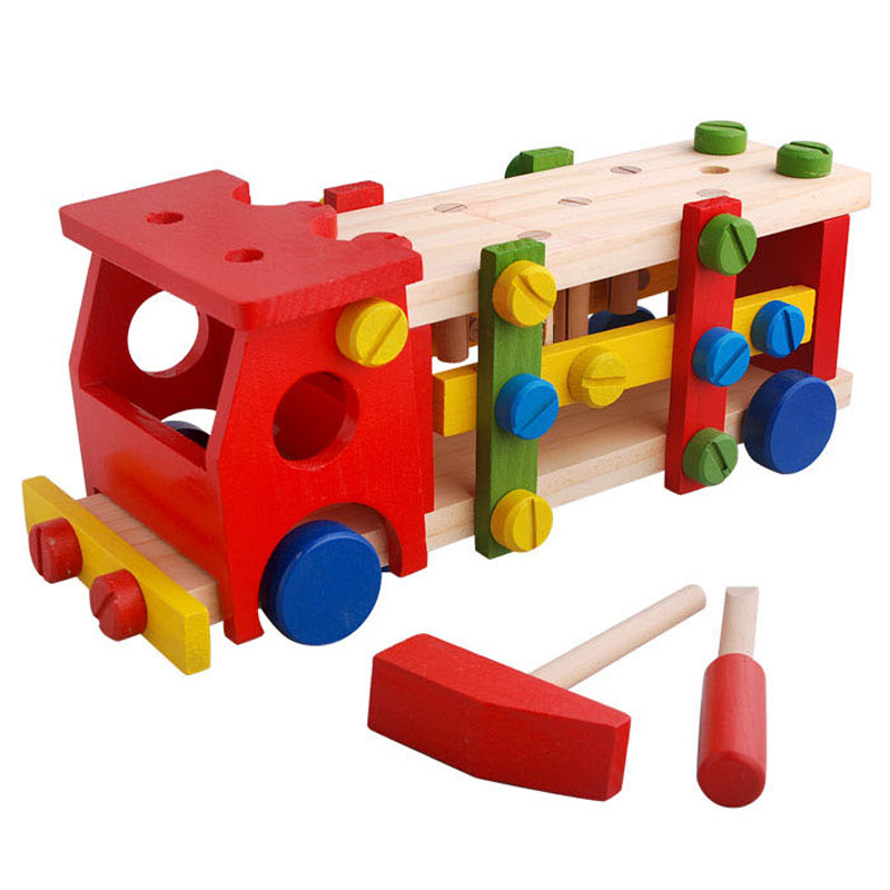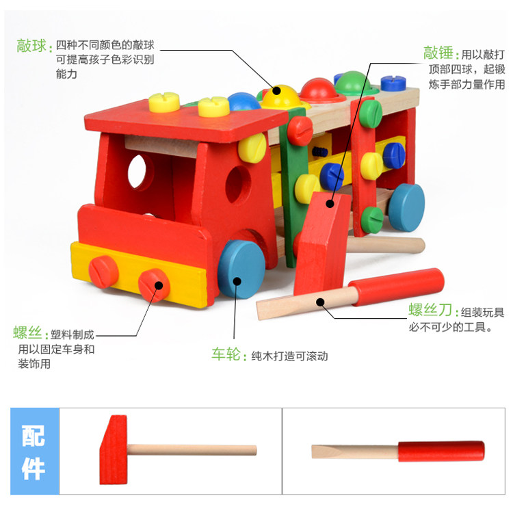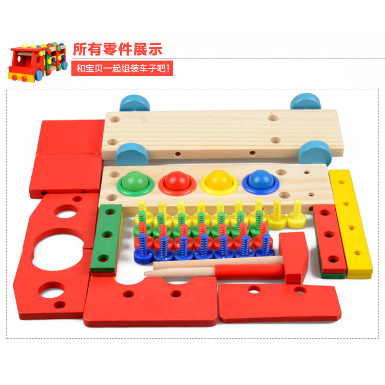 Children's puzzle toy wooden removable car boy baby hands-on removable screw nut combined assembly tool