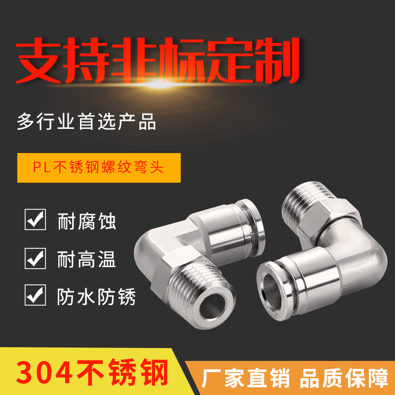 Stainless steel outer wire quick plug elbow Pneumatic quick plug outer wire elbow Trachea quick plug outer wire elbow PL