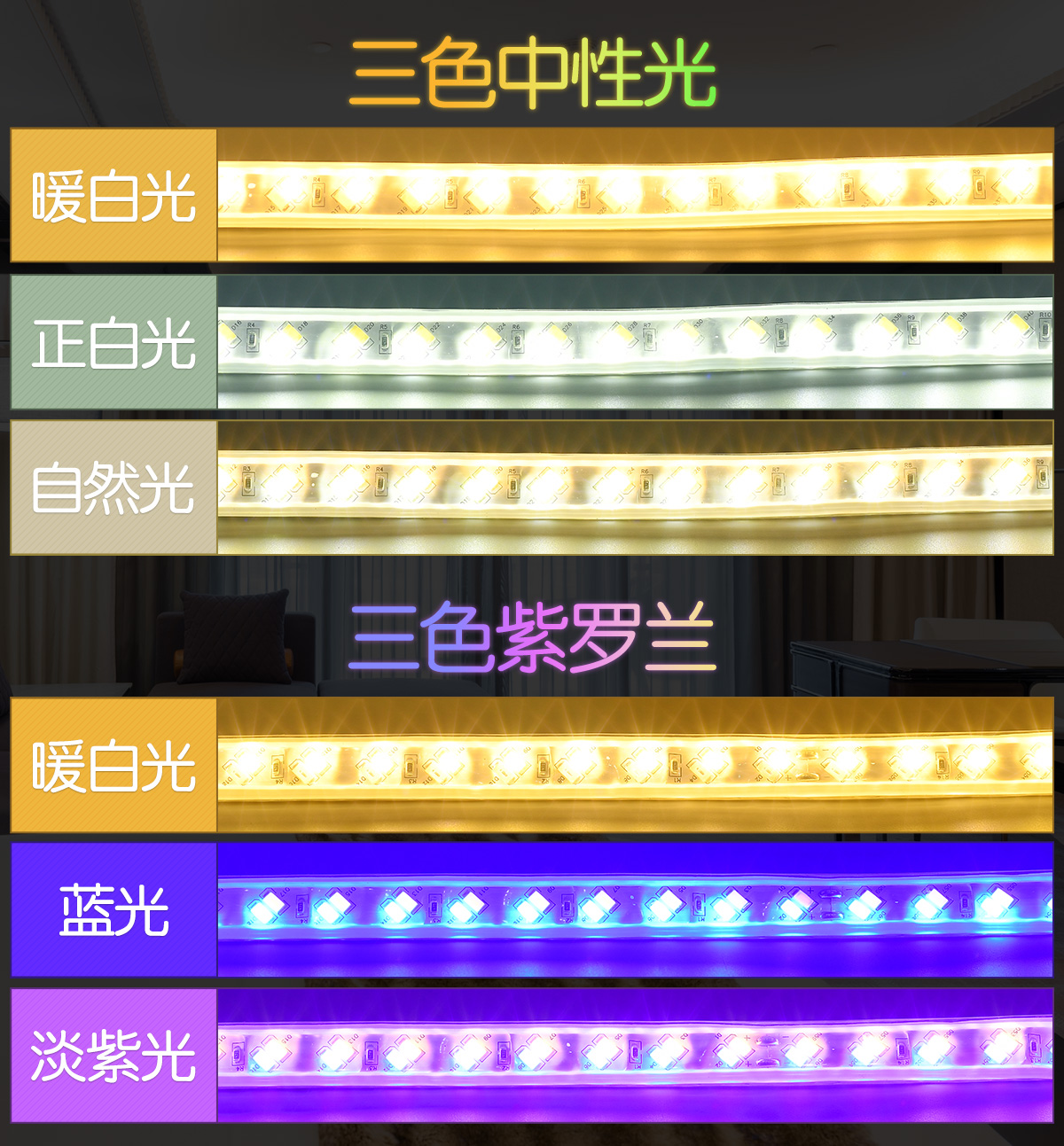 Light strip LED three-color color change light strip home living room dimming light strip Ultra-bright outdoor waterproof 220V patch warm light