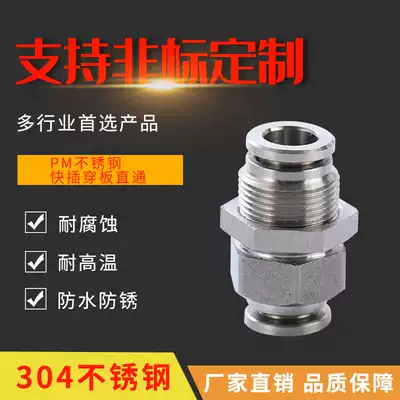 Jinhan stainless steel bulkhead straight-through semi-threaded plate pneumatic quick-plug connector bulkhead quick-plug PM joint