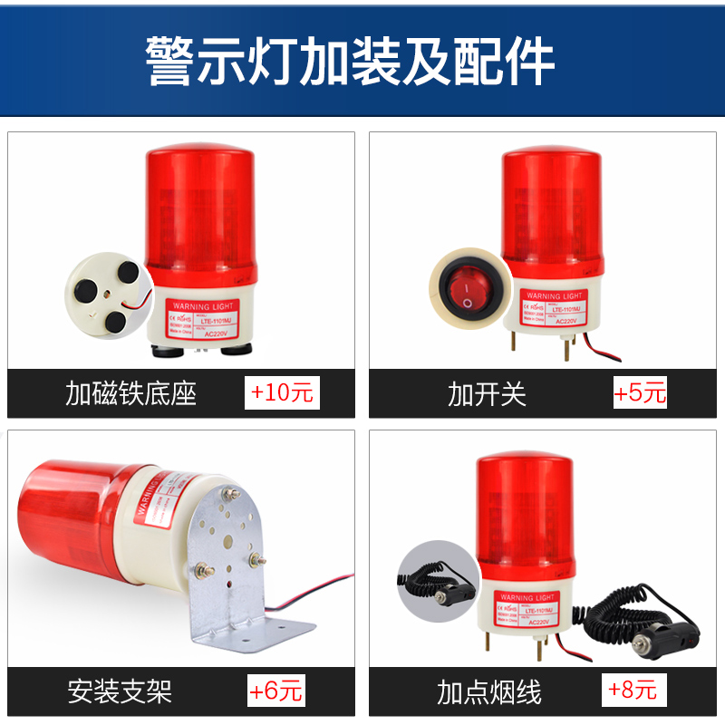LTE-1101MJ simulation rotating warning light LED flashing light sound and light siren alarm guard guard light 12V24V220V