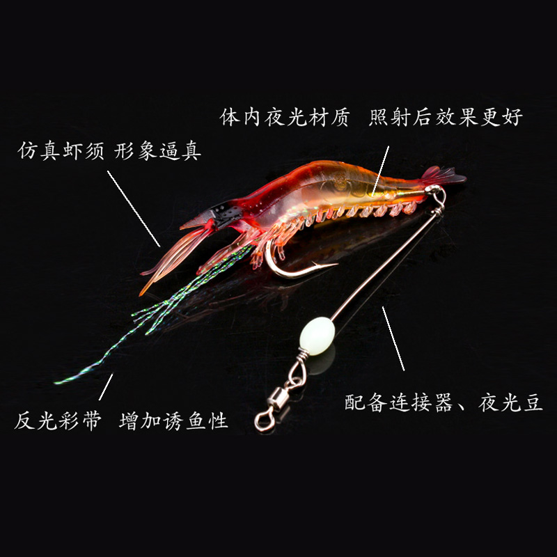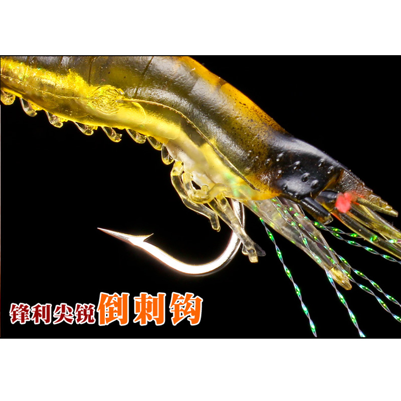 Overt yellow large shrimp with fish hook 1 only transparent large shrimp with fish hook 1 only red and large shrimp with fish hook 1 only luminous large shrimp with fish hook 1 only overdraft blue large shrimp with fish hook 1 only