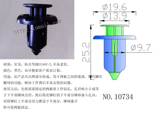 Opening propelling rivet suitable for Honda front Insurance Rod Locator Nylon Buckle Plastic flatollen buckle 10734
