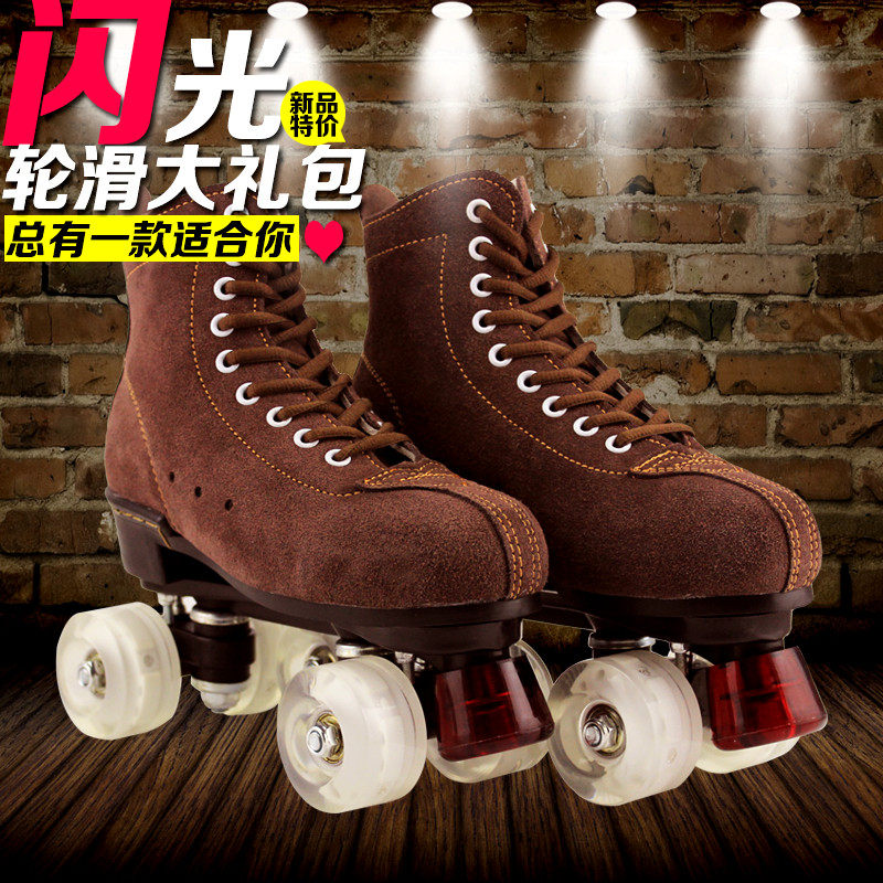 Adult boys and girls double rows of skates PU flash wheel skate four wheel skating ski accessories