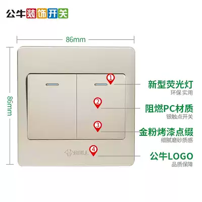 Bulls two open multi-control switch double-cut midway three-control 86 type household triple switch two-digit multi-link transfer panel