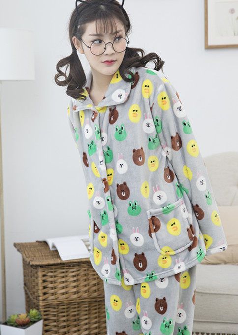 Custom autumn and winter thickened warm flannel pajamas suit men's home clothes female coral couple long sleeves