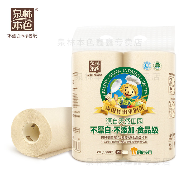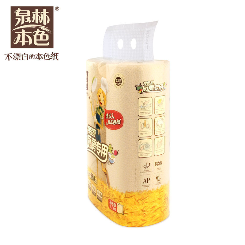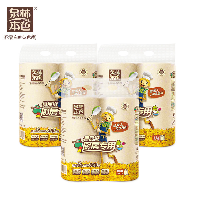 Quanlin natural color kitchen special paper roll toilet paper oil-absorbing paper sanitary paper towel absorbent 3 lifting 6 rolls official shop CF300
