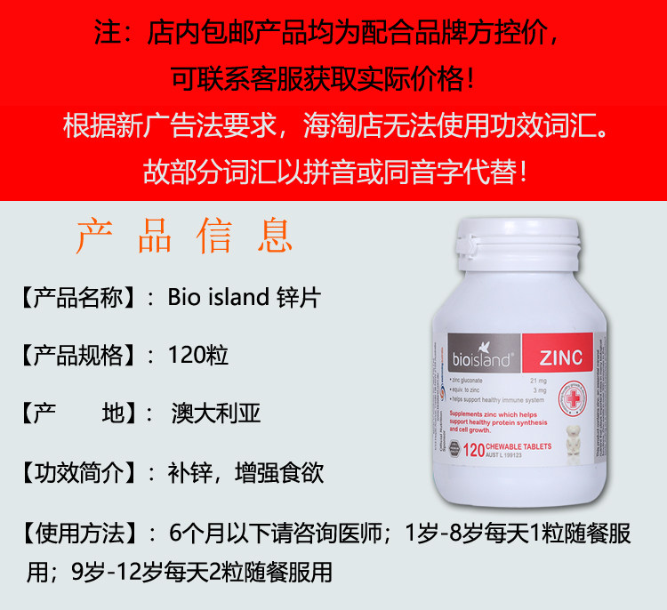 Australia's bio island infants and young children zinc supplementation bear chewing tablets 120 zinc tablets to improve appetite