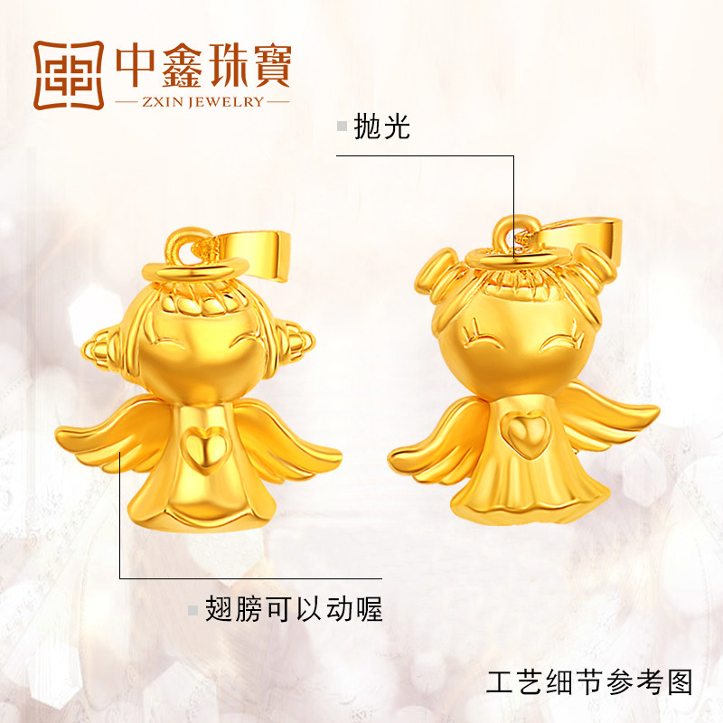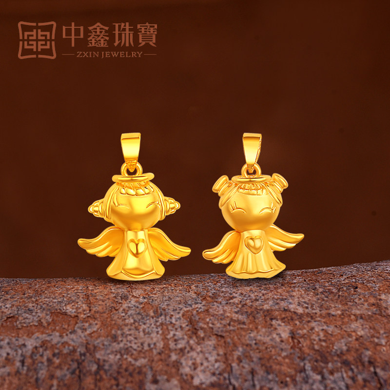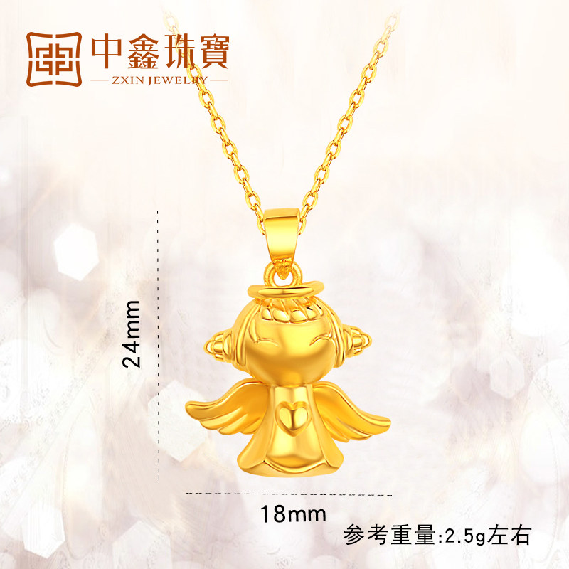 Gold pendant female 3D hard gold angel Lucky Star baby necklace Temperament simple children sweet gold clavicle chain