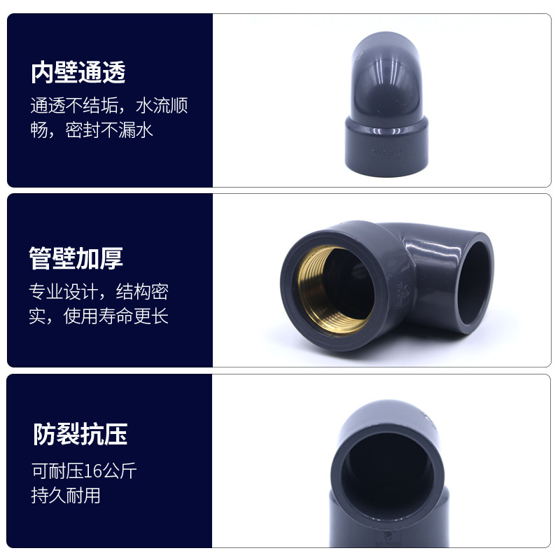 PVC industrial pipe fittings copper inner wire 90 degree elbow copper inner wire elbow copper inner tooth 90 degree elbow factory direct sales