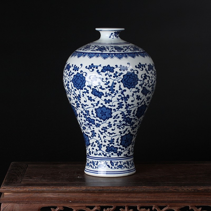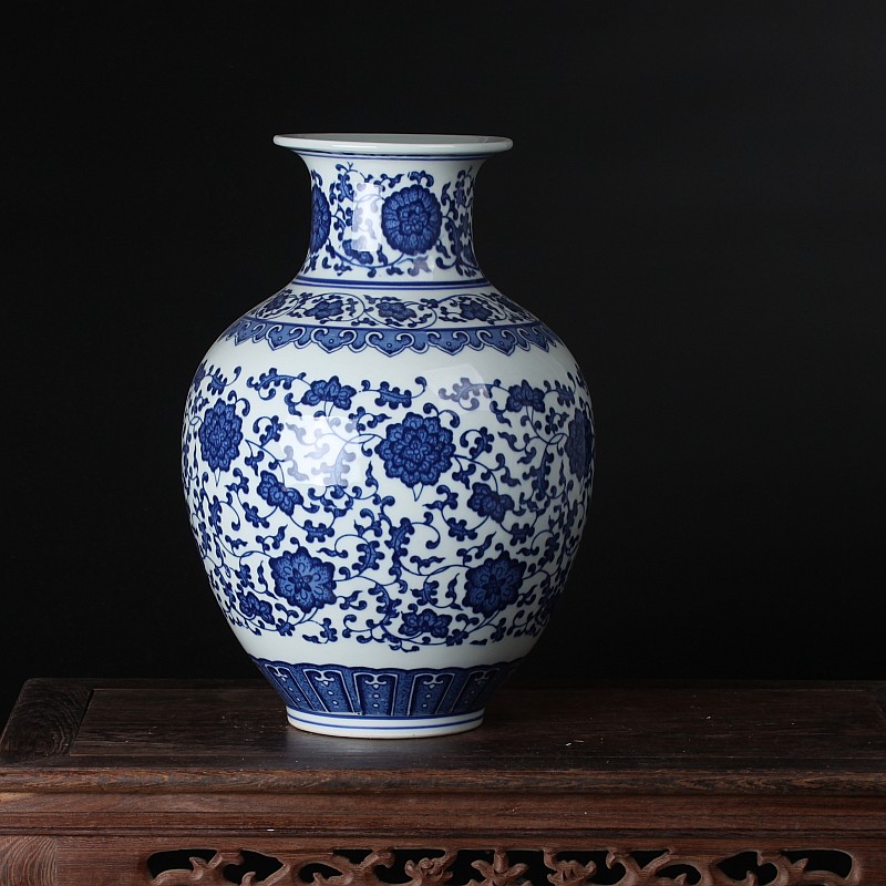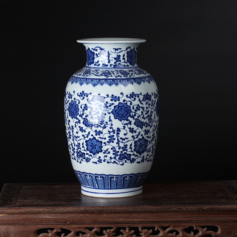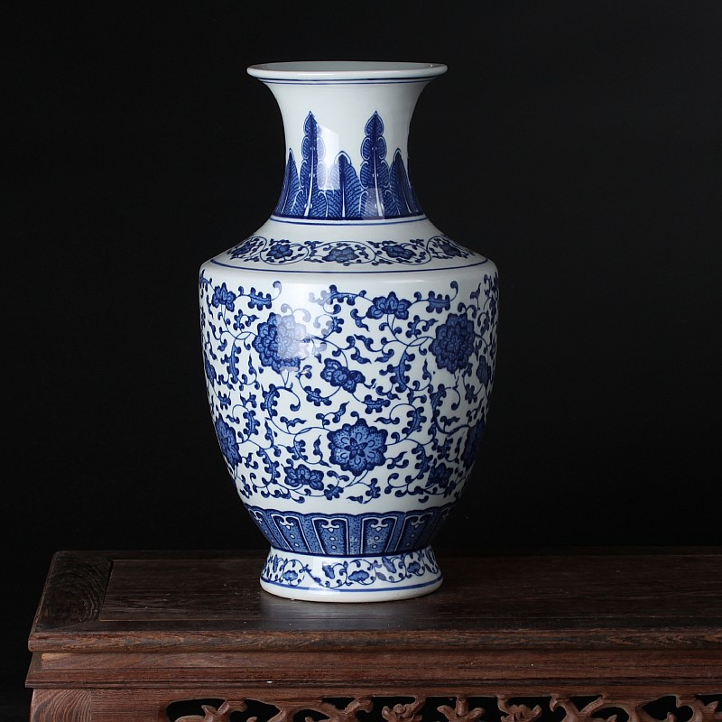 Jingdezhen ceramic ware imitation ancient green flower porcelain vase flower inserted bottle home Ornament Living Room Adornment Pendulum