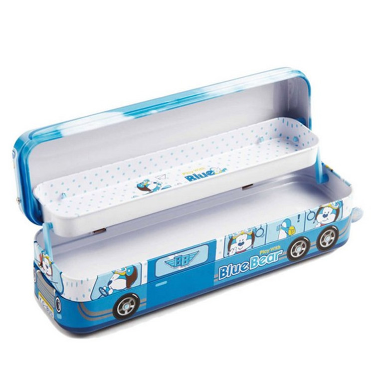 Plastic Students Toys Children's Pencil Case Men And Women Iron 3 Floors Bus Car Styling Cartoon Lead Pencil Case