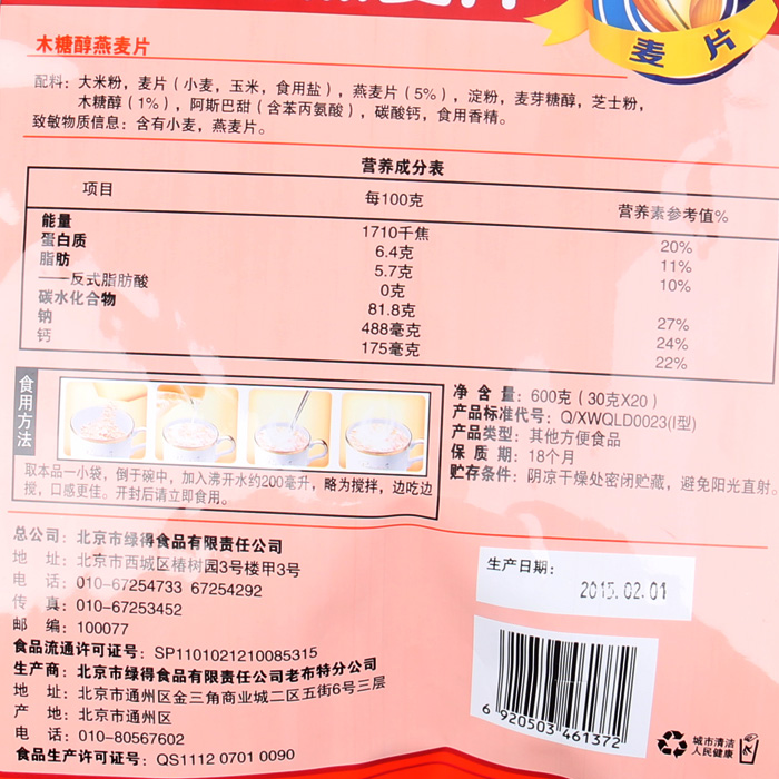 Old Butte xylitol oatmeal 600 grams xylitol brewed beverage cereal in the elderly sucrose-free brewed beverage products