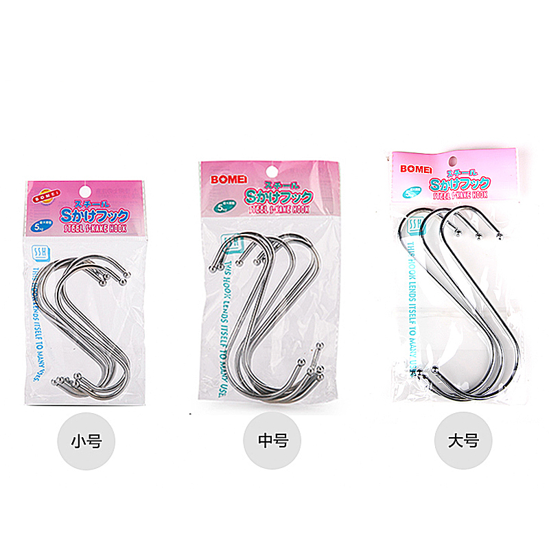 Japanese kitchen hook stainless steel double head S-shaped hook bathroom metal S hook door rear coat hook clothes hook