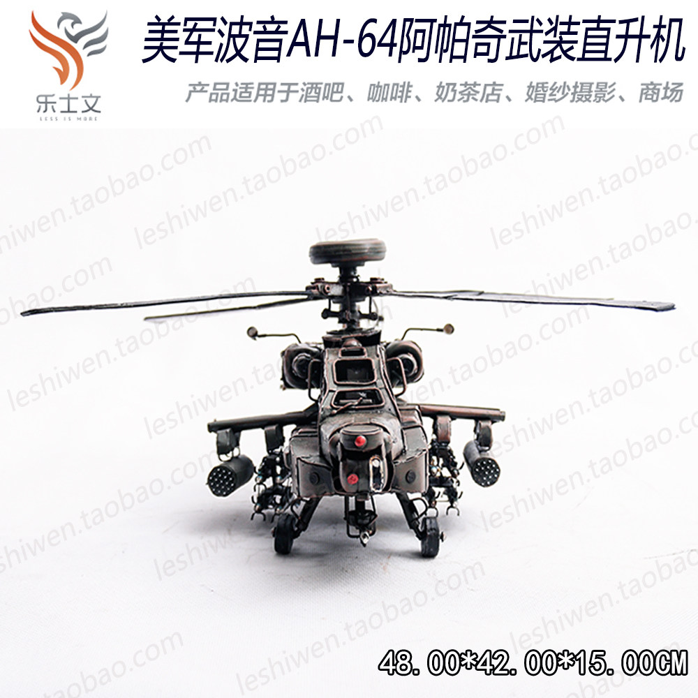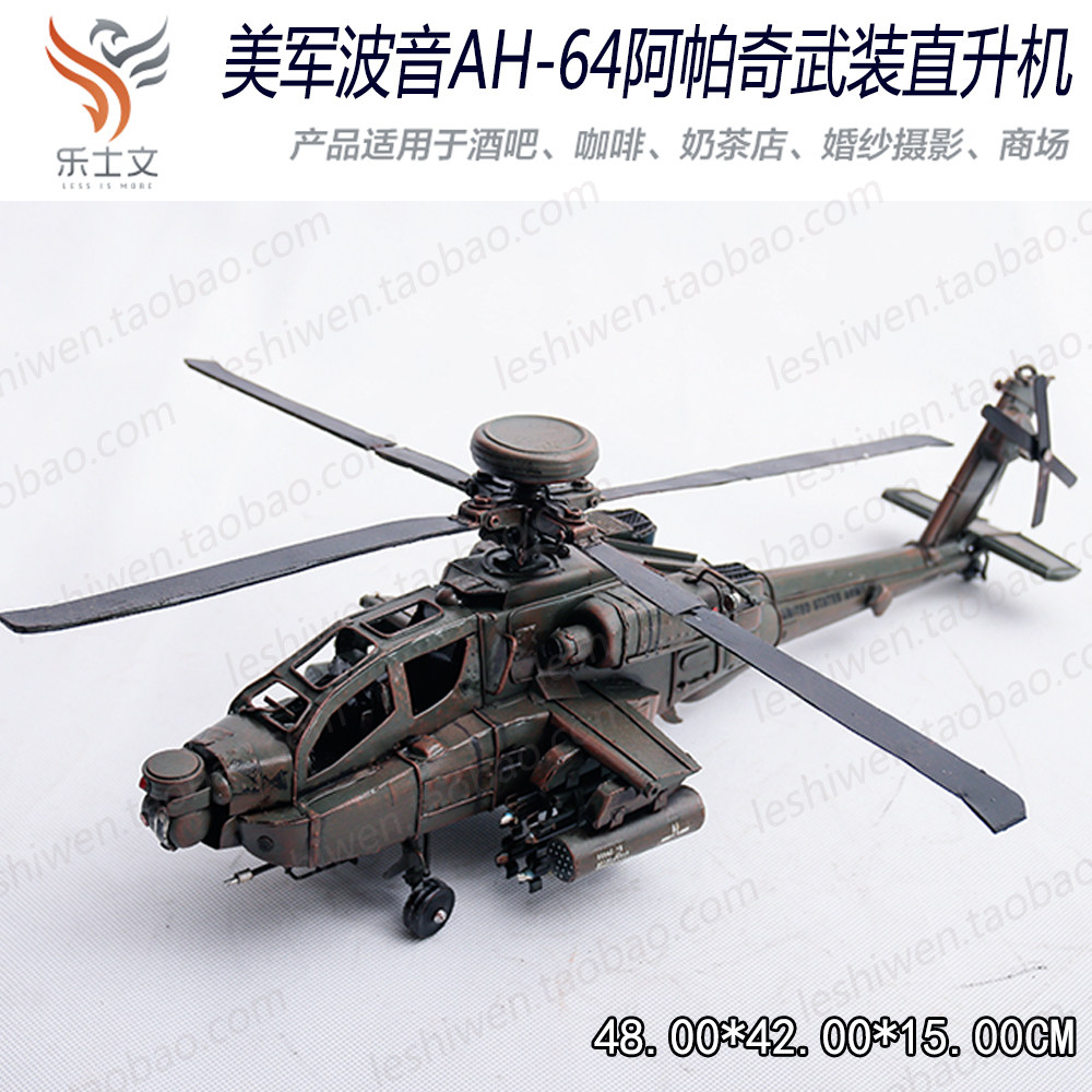 Apache Armed Helicopter Retro Iron Sheet Military Aircraft Model Kindergarten Home Decoration Air Hanging Accessories