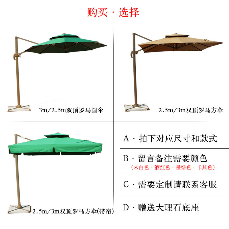 2 5m single top Roman round umbrella 3m Double top Roman square umbrella 2 5m Double top Roman square umbrella 3m Single top Roman square umbrella 2 5m Single top Roman square umbrella 3m Double top Roman square umbrella (with curtain) 2