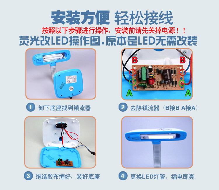 Huachong table lamp glass fluorescent LED eye protection energy-saving lamp tube double pin single U type bath bully lighting source light bulb original dress