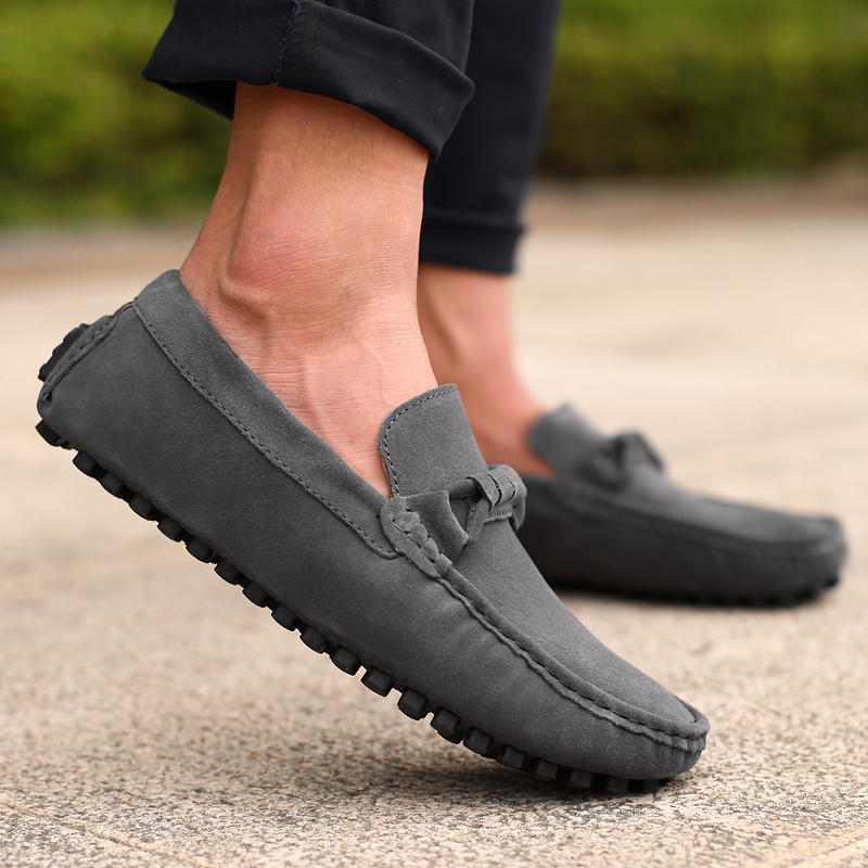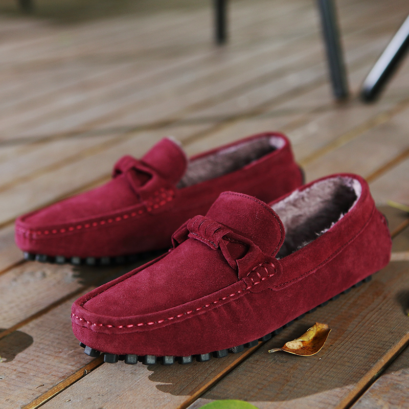 Red men bean shoes men leather summer wear leather trend Korean lazy one foot shoes