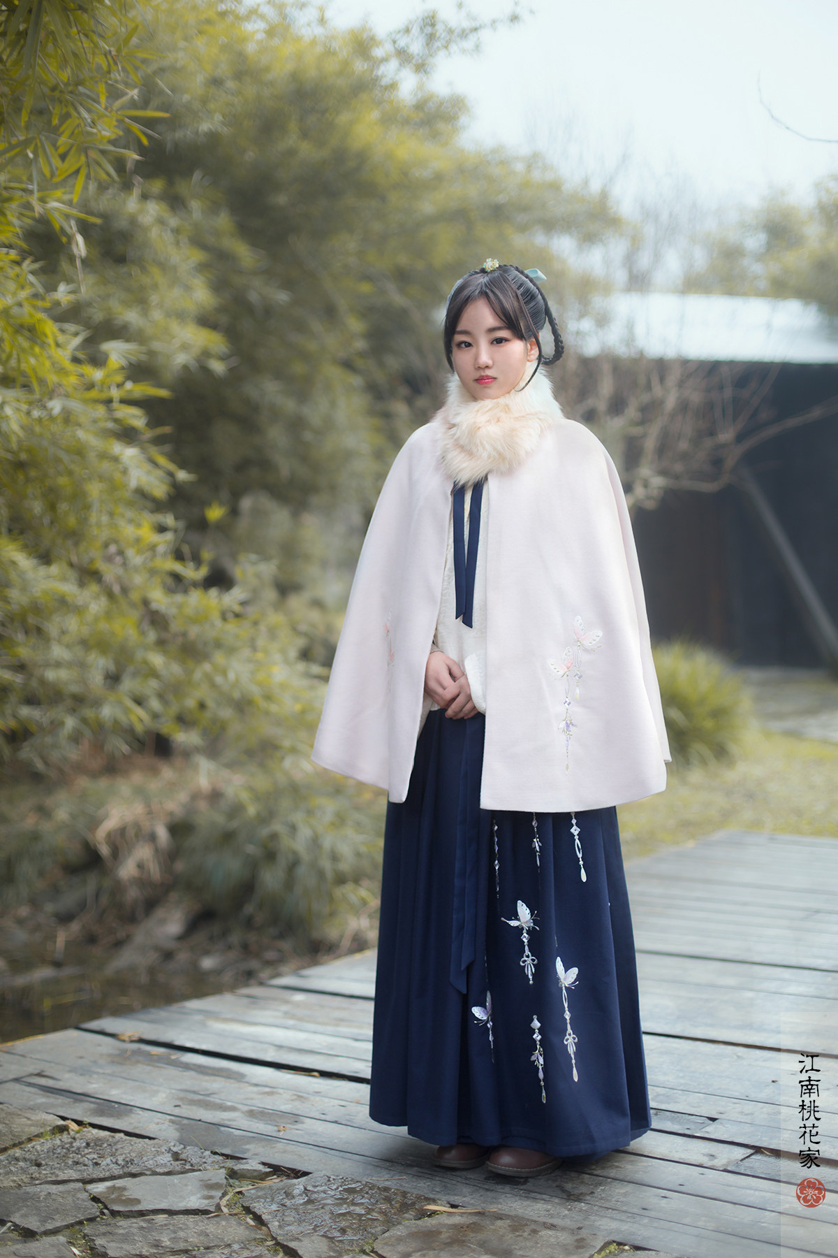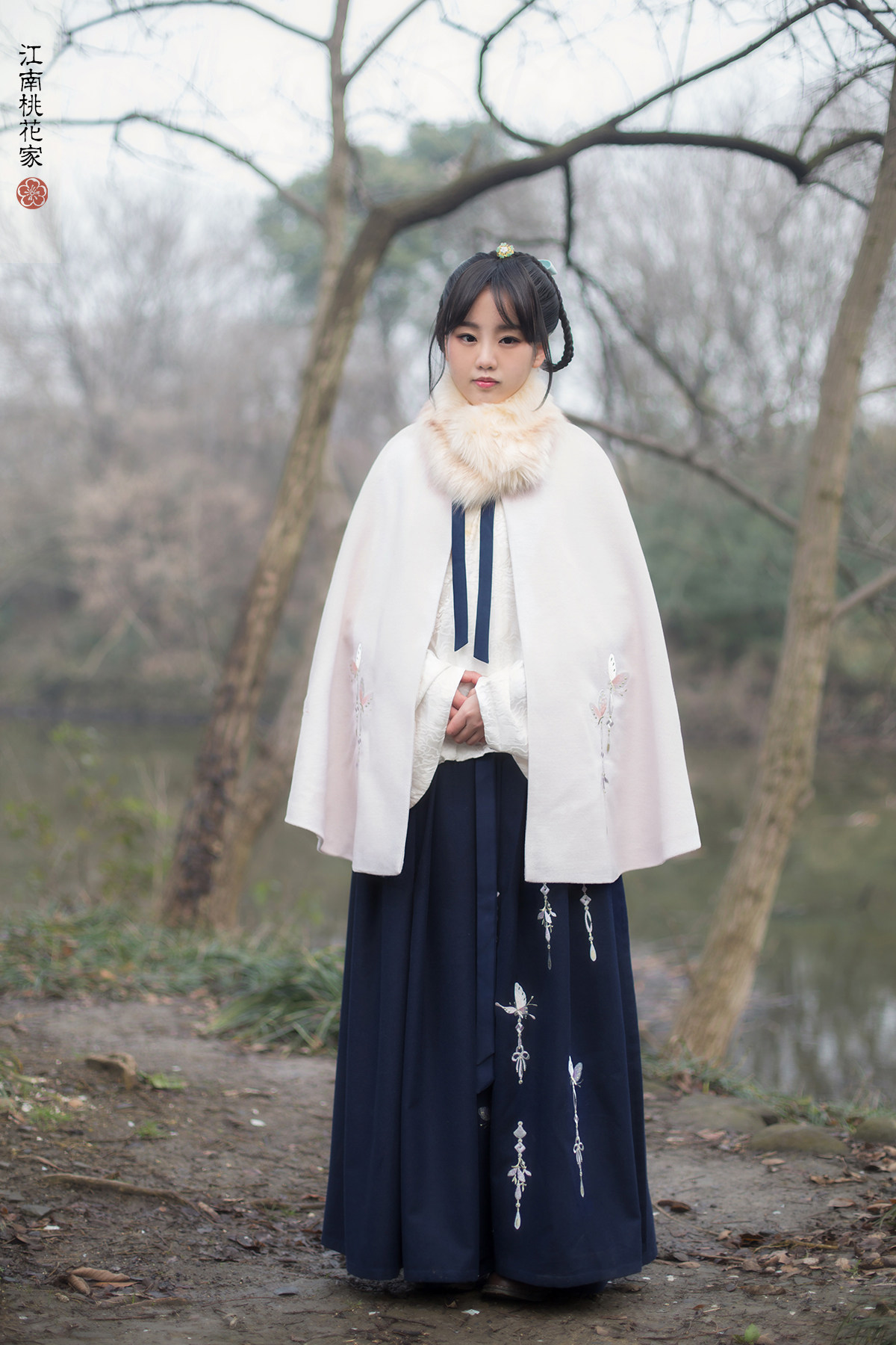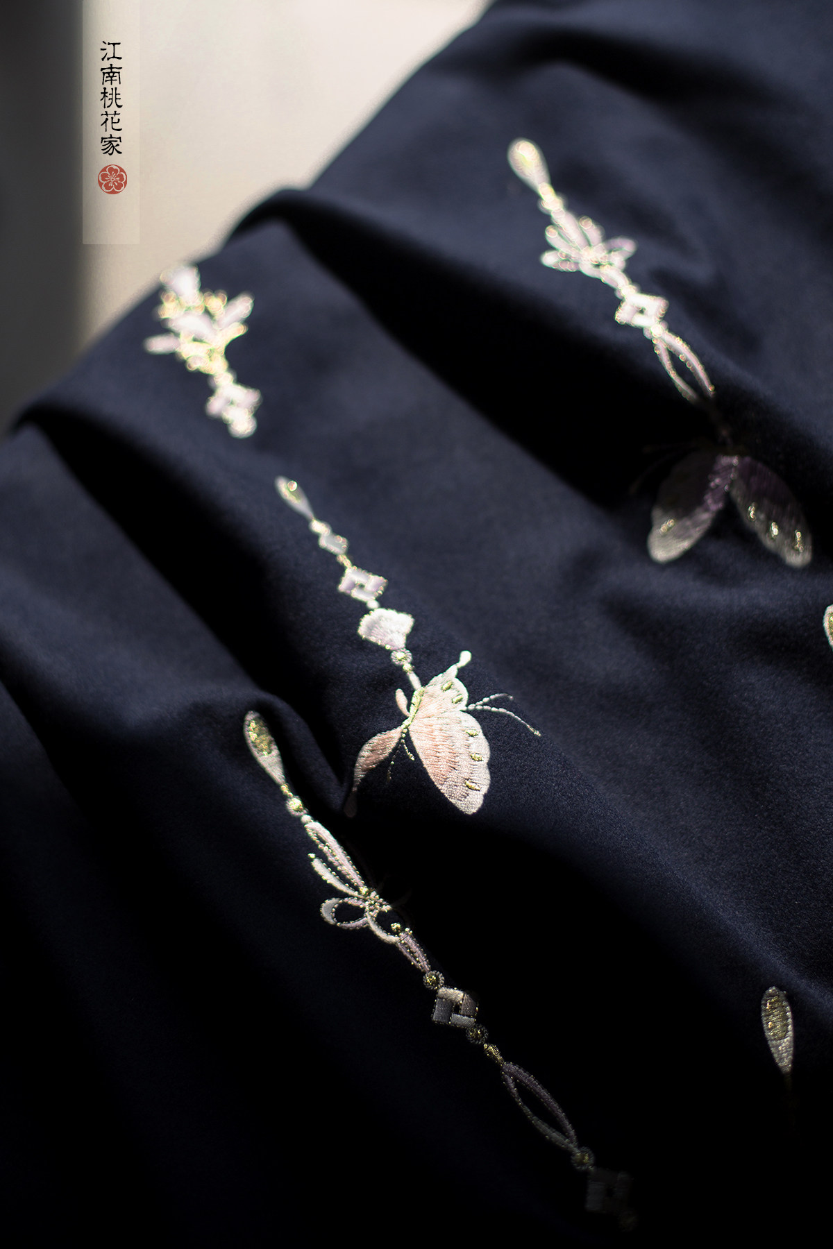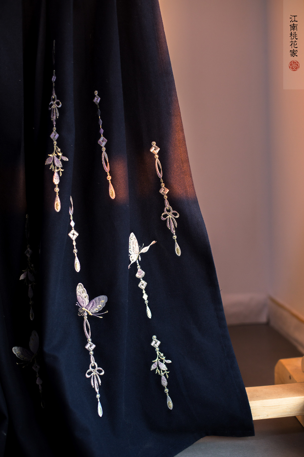 (Jinse midot dream) Navy blue embroidered butterfly Hanfu waist skirt thin woolen autumn and winter custom