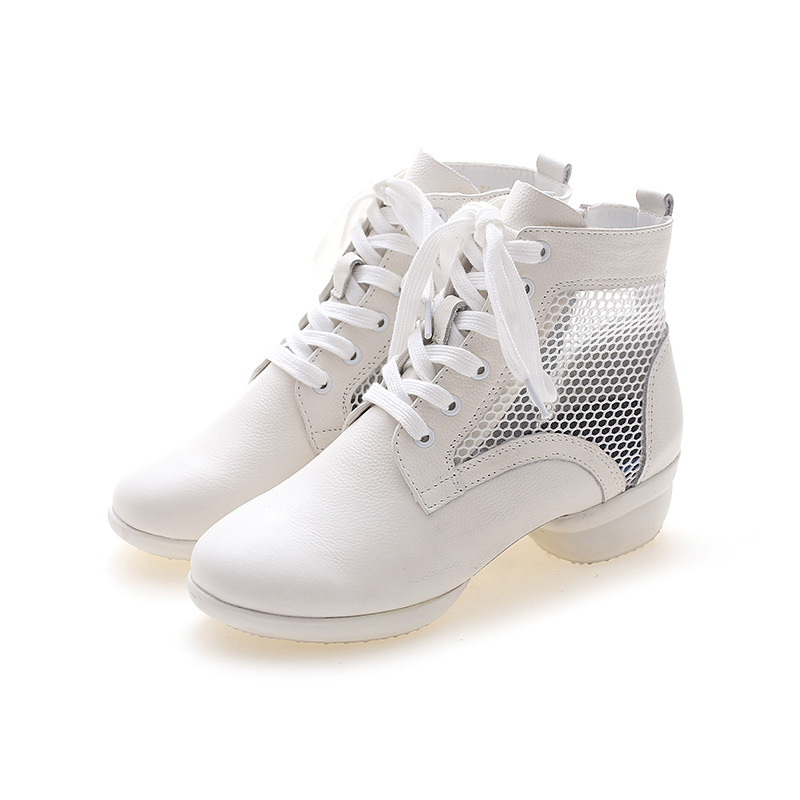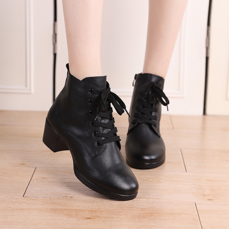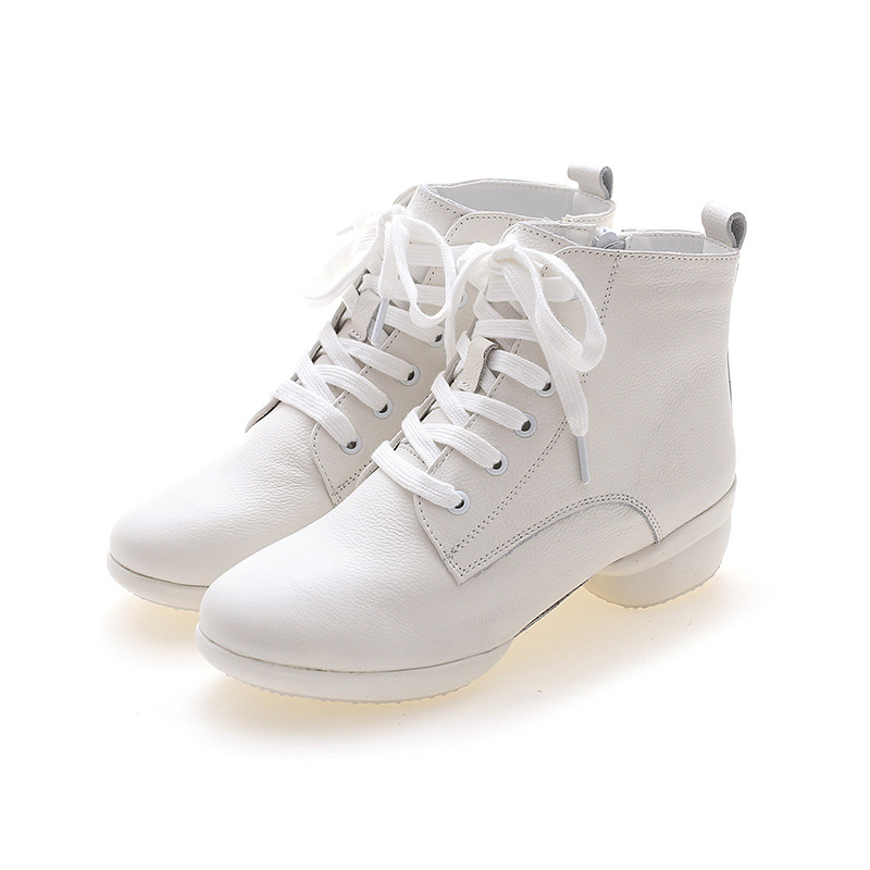 Spring Summer Autumn Winter Genuine Leather High Help Square Dance Shoes Boots Woman heightening plus velvet soft bottom Dancing Shoes Water Soldier Dance Boots Woman