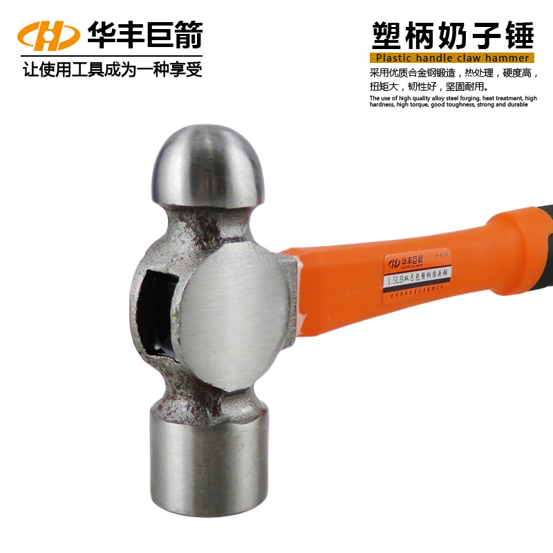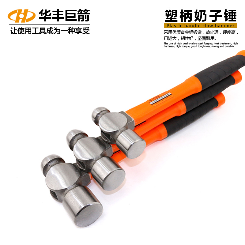 Chrome vanadium steel hammer steel pipe crown hammer round hammer rubber woodworking hammer nail hammer tit hammer