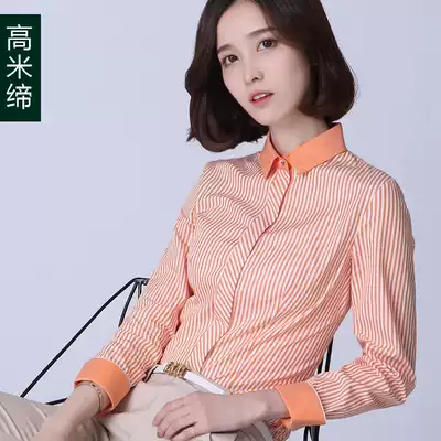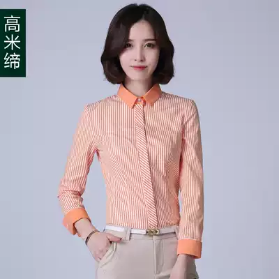 Striped shirt women's 2021 spring new women's professional inch shirt women's long-sleeved tooling orange overalls shirt women