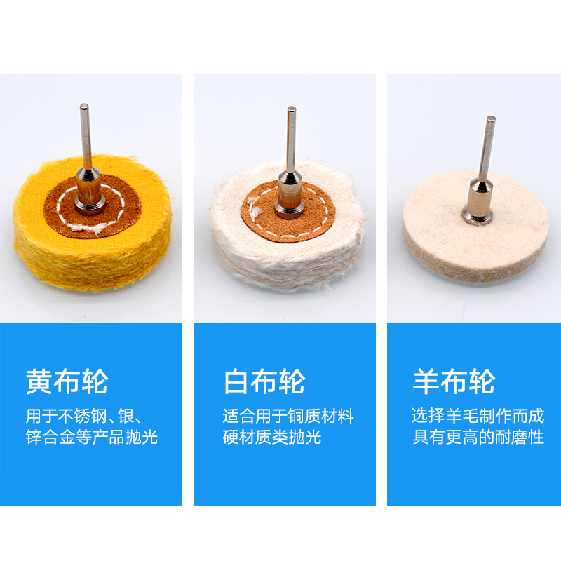 White cloth wheel (1) yellow cloth wheel (1) wool wheel (1)