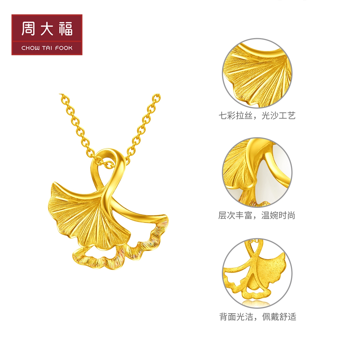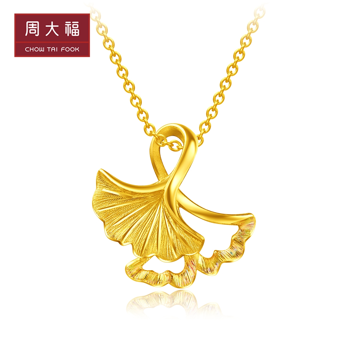 Zhou Dafu Flower Moon Jiu Series Almond Leaf Almond with Golden Gold Pendant Denominated EOF74 Selection