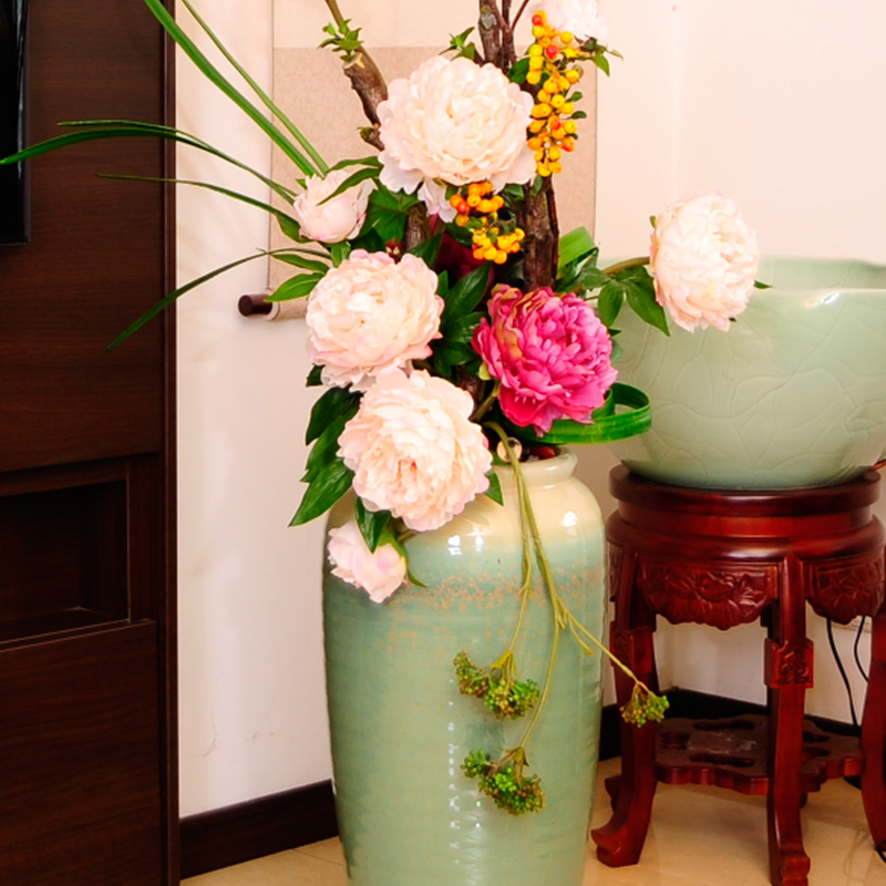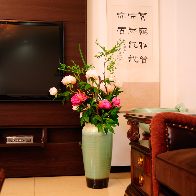 Simulation peony flower Chinese large-scale floor flower art living room TV cabinet decoration decoration fake flower hotel lobby