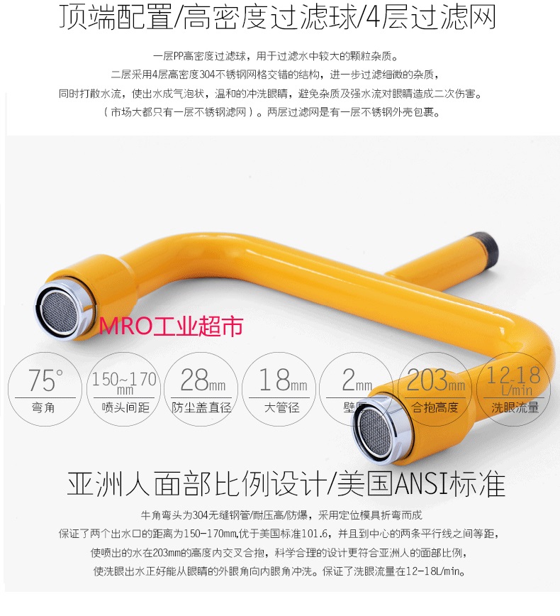 Wall-mounted stainless steel eye washer laboratory for eyewash eye flushing AJD-688006602