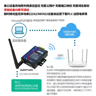 (ZLAN)P2P wireless serial server RS232 485 42 to wifi server remote point-to-point communication ZLAN7144N
