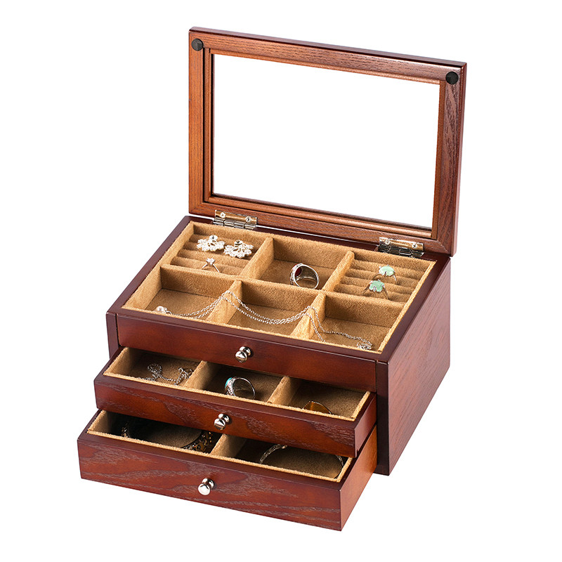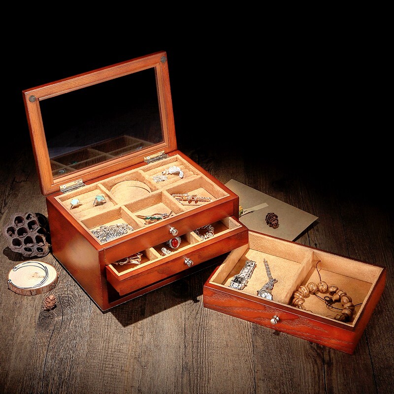 Wooden Chinese multi-layer jewelry box storage box Ear needle ring ring brooch bracelet collection box Jewelry box Jewelry box