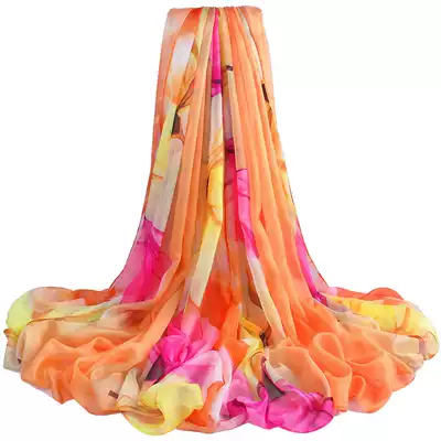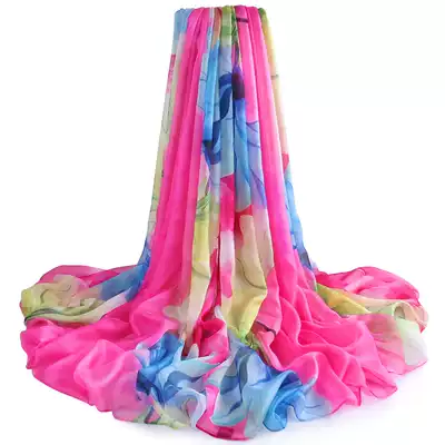 Summer sunscreen women's silk scarf long version sunscreen air conditioning shawl dual-use oversized beach towel seaside variety gauze towel