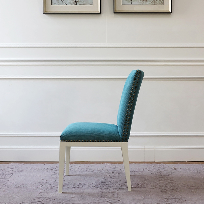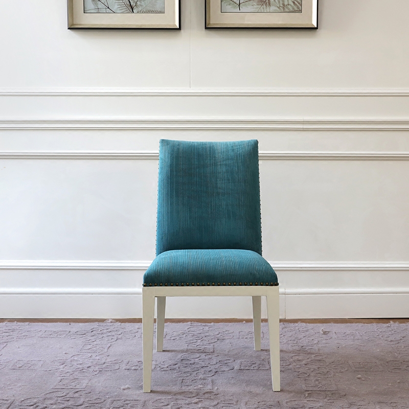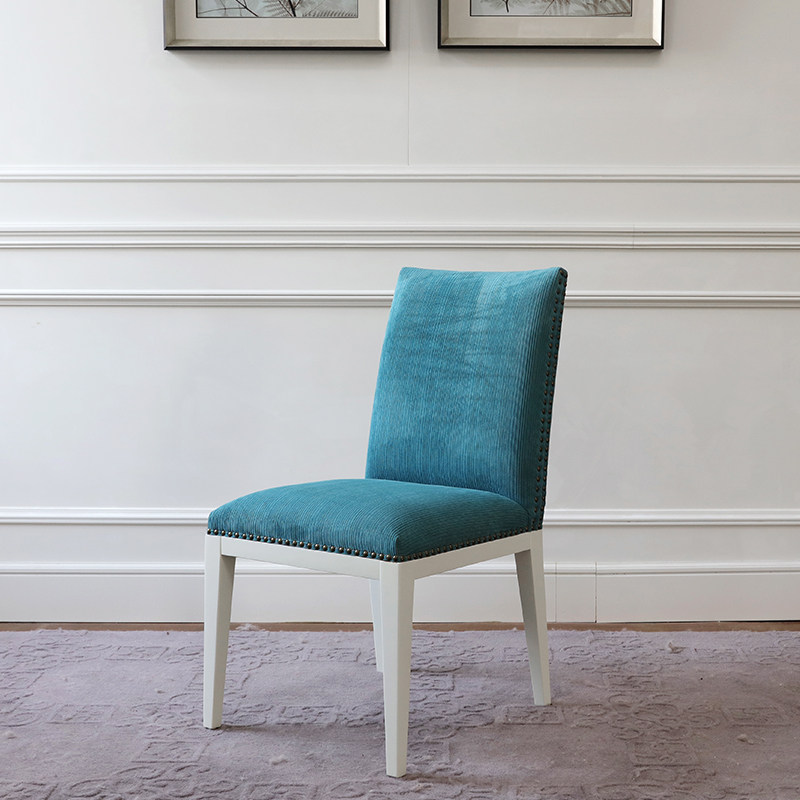 Modern American village peacock blue dining chair designer Jane approx. back chair soft bag solid wood cutlery book house furniture