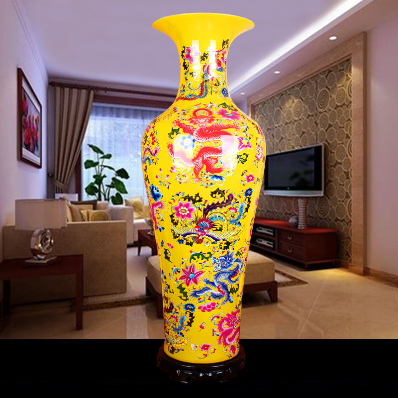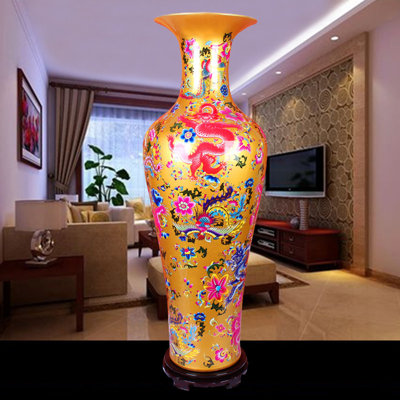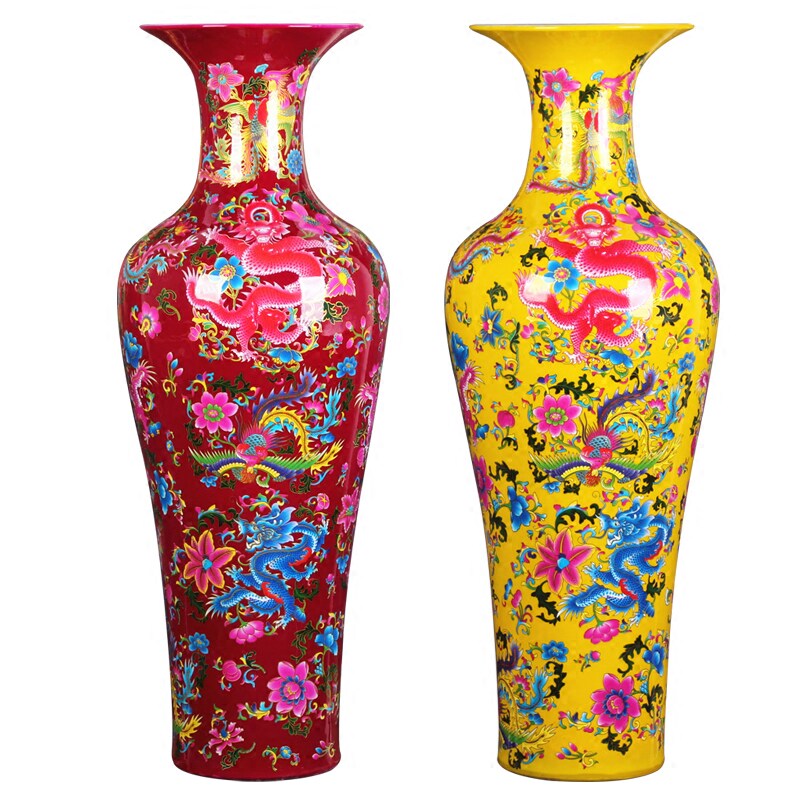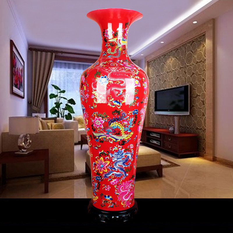 Jingdezhen Ceramic Vase Vase China Red Longfeng Living Room Floor 1 m Large Number Home Gift New House Pendulum