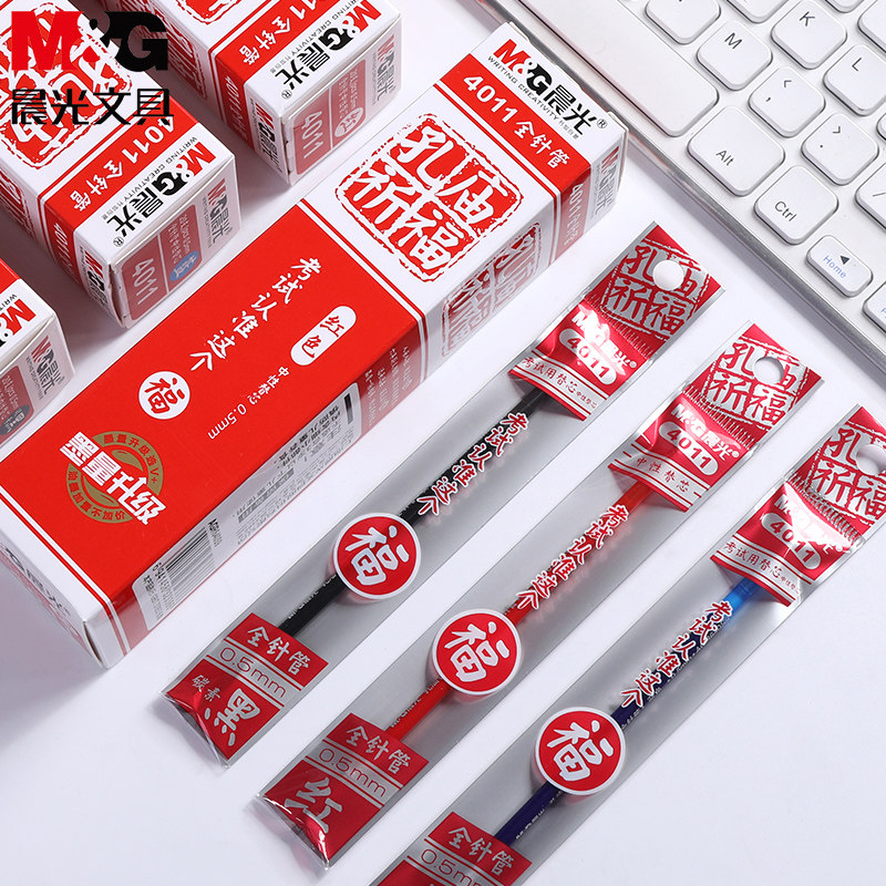 Morning light neutral refill Special refill for students with exam full needle cap nut 4011 Carbon black water-based refill 0 5mm blue red 6150 Confucius Temple blessing 7001 bullet 4