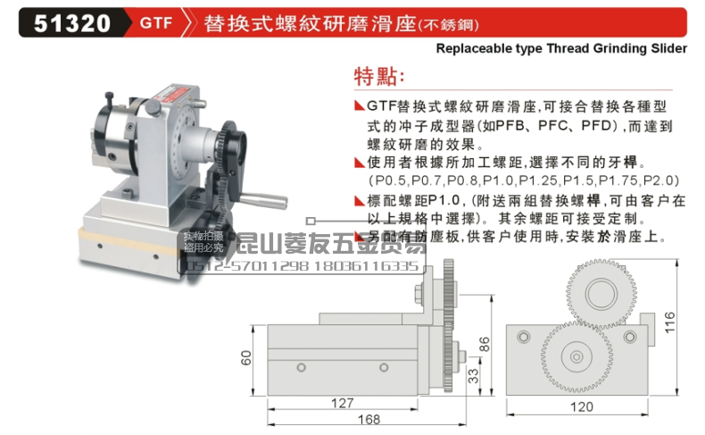 Fine exhibition replacement threaded grinding sliding seat GIN-GTF unidirectional three-claw replacement threaded grinding machine GTFB C
