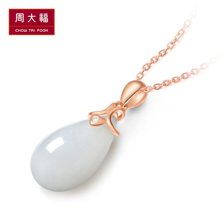 Chow Tai Fook Jewelry Fashion Hetian Jade 18K Gold Color Gold Diamond Pendant V107461 Selection
