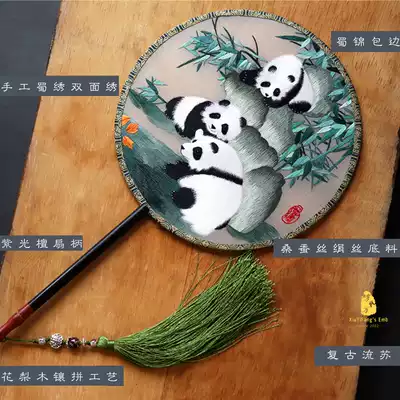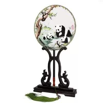 Chengdu characteristic Shu embroidery double-sided embroidery panda group fan decoration Chinese style foreign affairs gifts travel souvenirs for foreigners