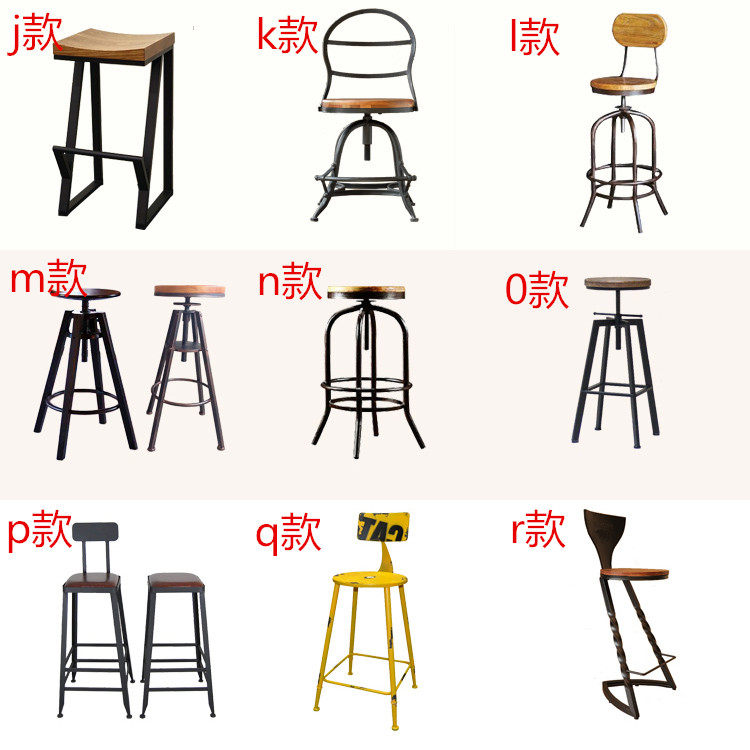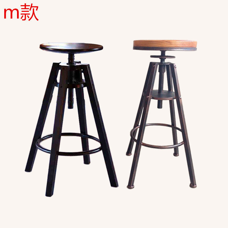 Retro solid wood wrought iron dining chair bar chair rotating lifting high chair office chair backrest chair front bar chair