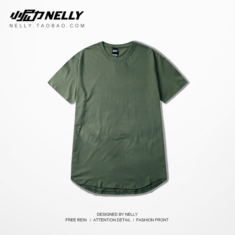 Wild with the same item men extend plain high street t-shirt long short-sleeved men's T-shirt solid color men and women