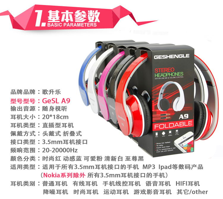 Songle A9 mobile phone headphone with microphone wire head - mounted wired headphone convertible wire