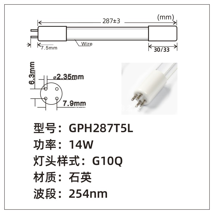UV lamp GPH287T5L 14W GPH357T5L 17W UV sterilization lamp Quartz UV sterilization lamp
