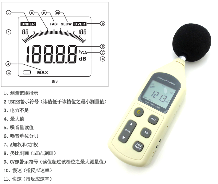 Digital Display Noise Meter Sound Level Meter Noise Meter Tester Portable Environmental Volume Meter In-Car Noise Detector
