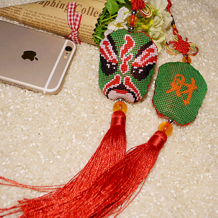 Cross-stitch machine embroidery finished car pendant high-end ornaments double-sided embroidery Peking Opera face make-up God of wealth to send Fu Lu Shou Jubilee