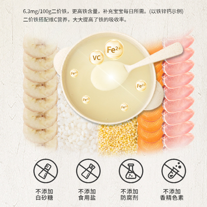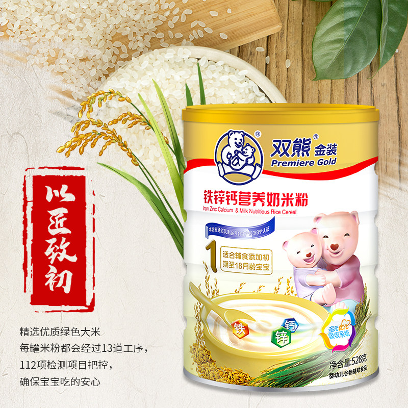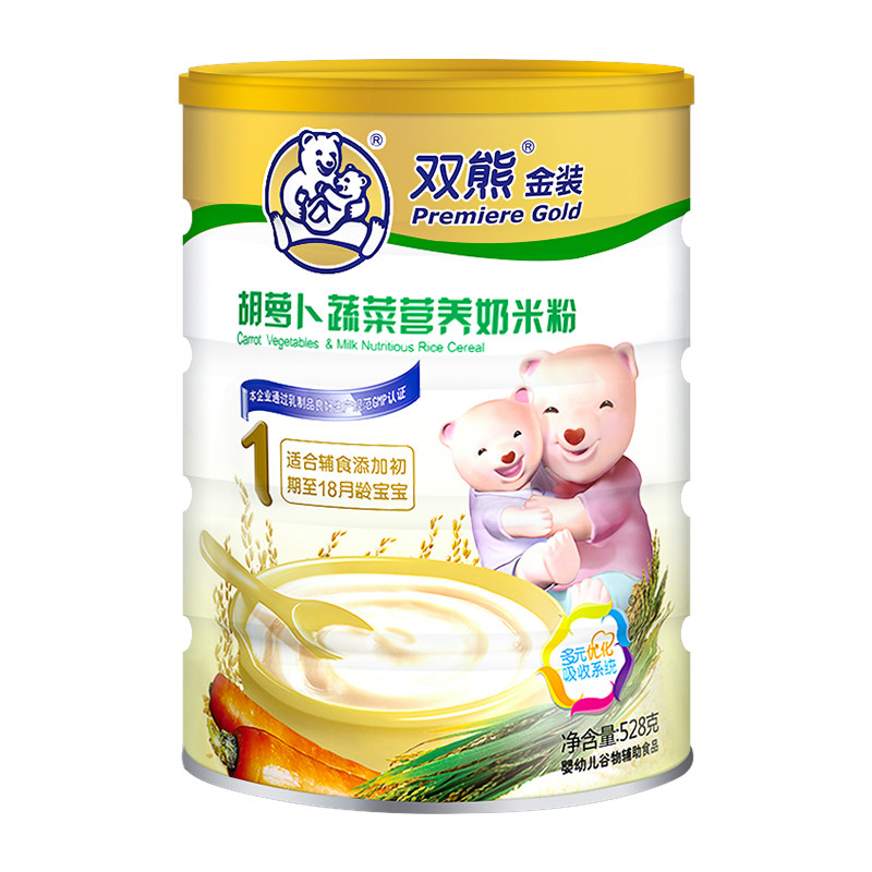 Double Bear Rice Noodles Baby 6 Nutrition Rice Mixed High Iron Zinc Calcium Rice Noodles Baby Vegetables 9 Probiotics Non-staple Food 528g Can