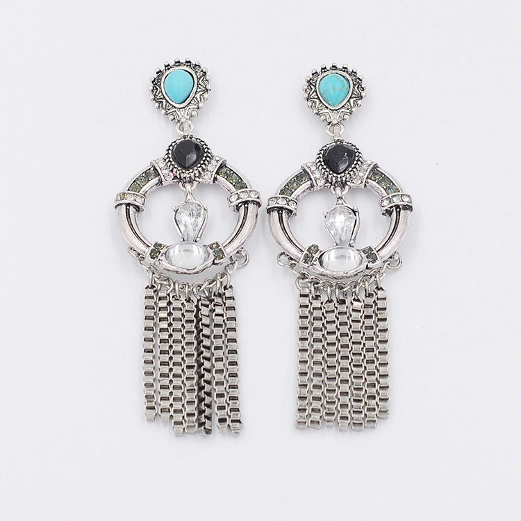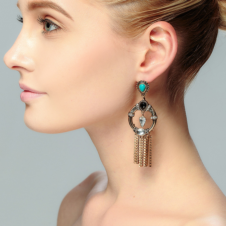 Aidvi Europe and America Ornament Retro Fashion Pendant Earneous inserts Inlaid Drilling Green Pine Stone Earrings Woman
