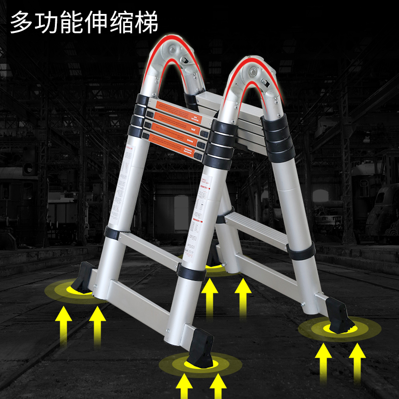 Aoyu household telescopic ladder Folding lifting stairs thickened aluminum alloy multi-function convenient engineering ladder Herringbone ladder