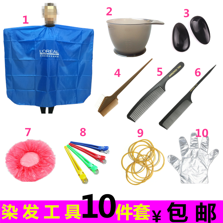 Hair dyeing tool set free postage hair dyeing shawl, baked oil bowl, earmuffs, baked oil, cloth, baked oil, comb, shower cap, 10-piece set
